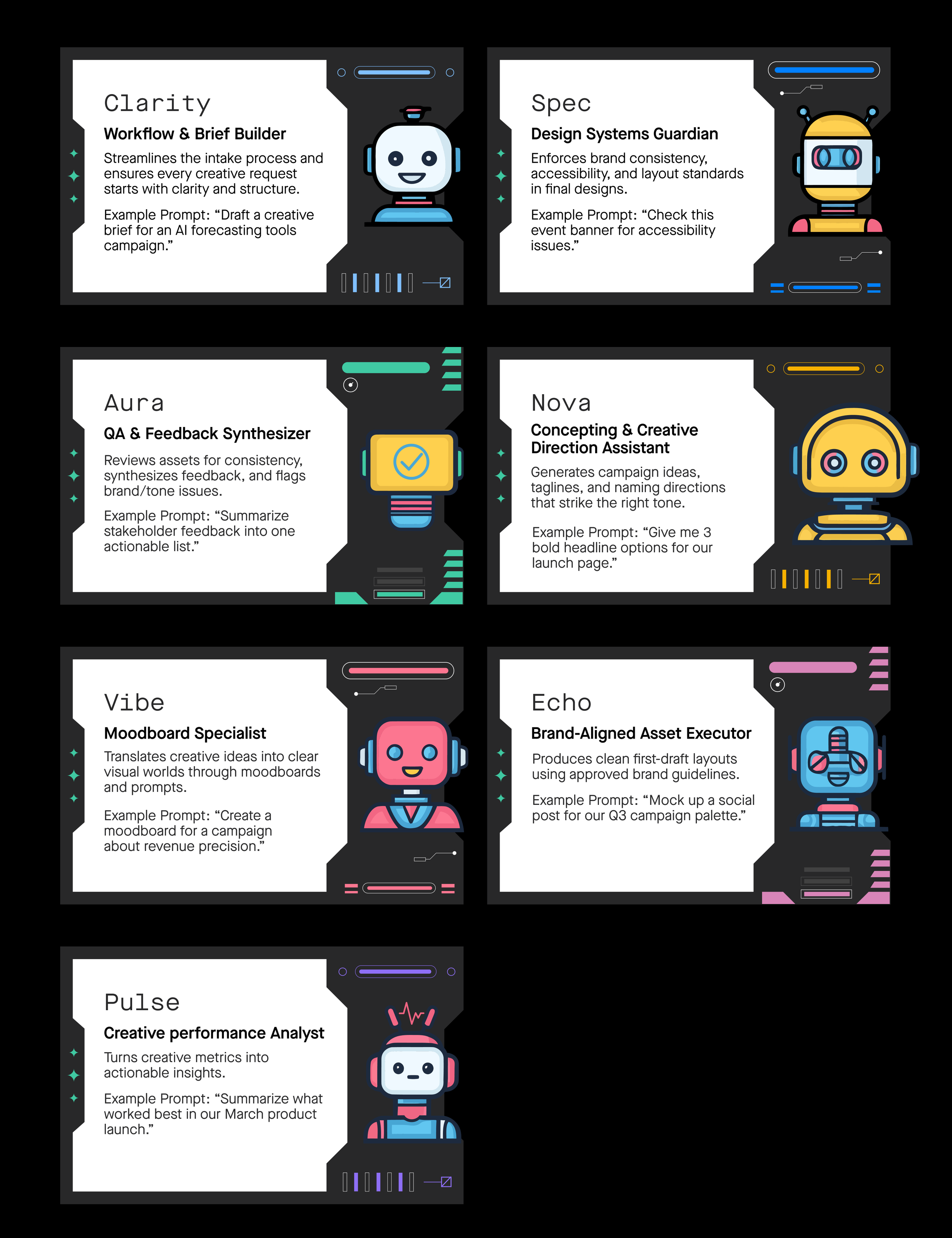 “Meet the Creative Ops AI Squad — seven specialized GPT teammates built to extend, not replace, our creative capabilities.”